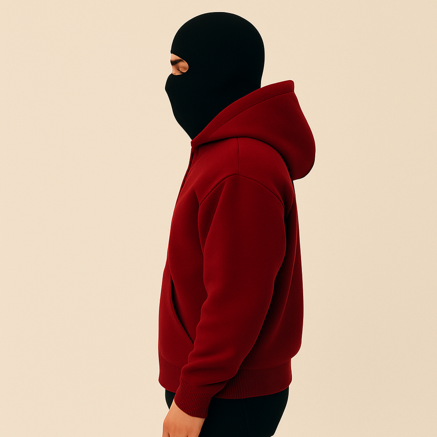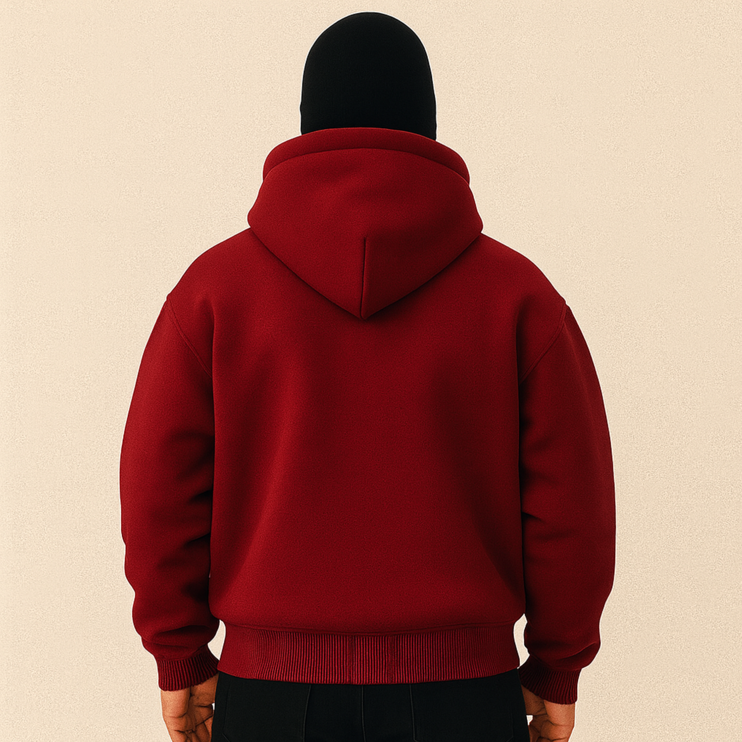 Le textile est épais (420 GSM) mais respirant. Il protège du vent et du froid sans étouffer. Parfait pour automne, hiver, soirées, déplacements et studio.